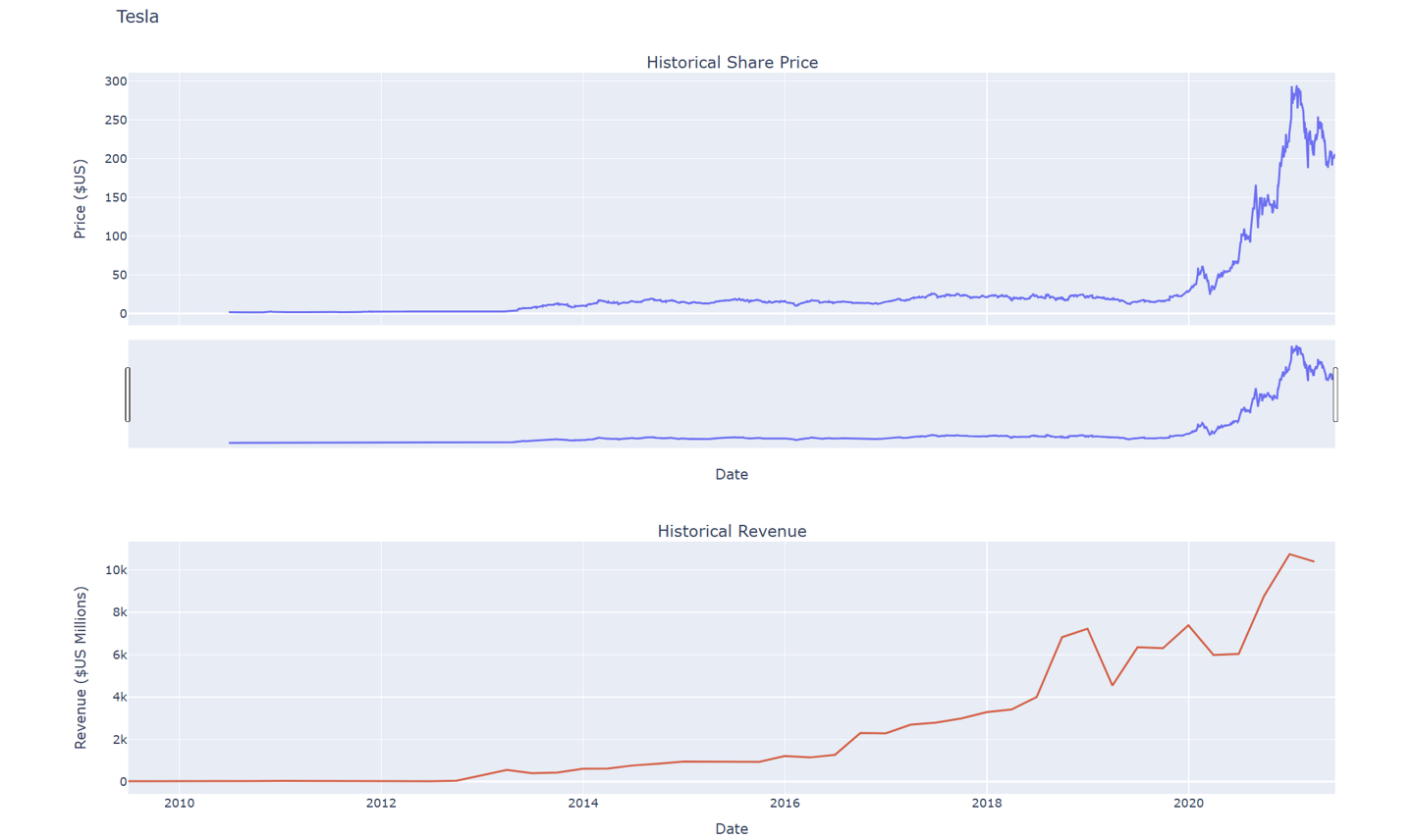Mithilfe von Webscraping und der yfinance Bibliothek wurden Aktiendaten zu einigen der weltweit führenden Technologieunternehmen extrahiert und die Daten zur Erstellung von Diagrammen über deren Aktienwachstum und -leistung verwendet.